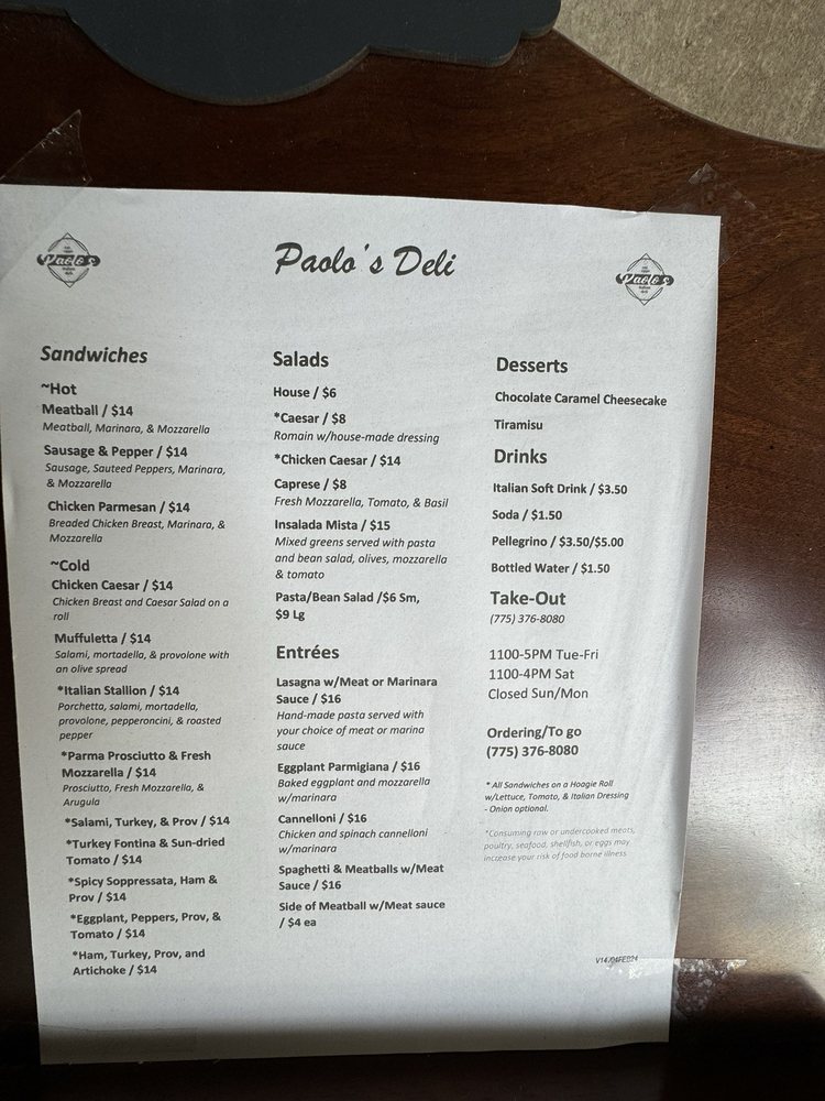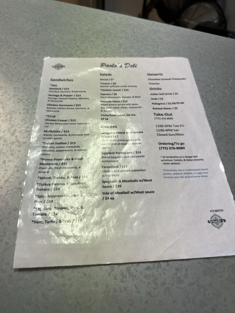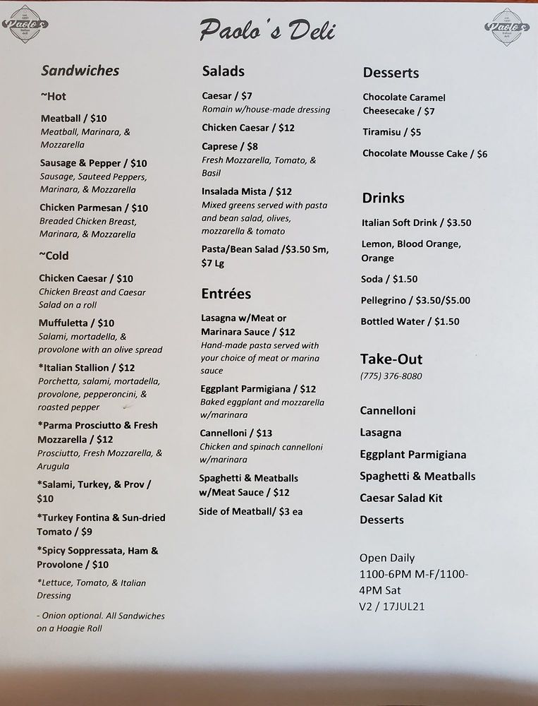 Paolo’s Deli Menu